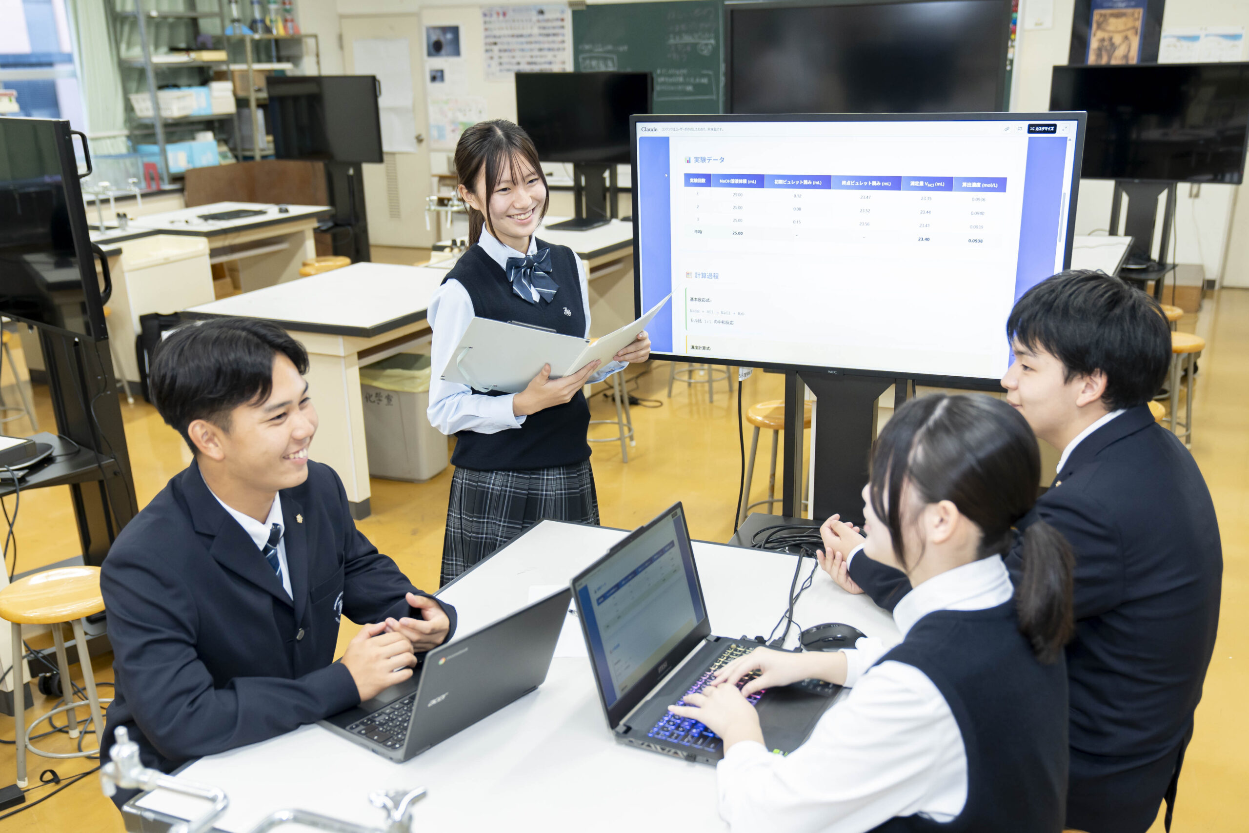 探究の学校の授業 探究の学校として、総合的な探究の時間や本校独自設定の探究科目群に限らず、各教科でも思考力を鍛える探究型の授業、デジタルを融合させた授業、ゲーミ…