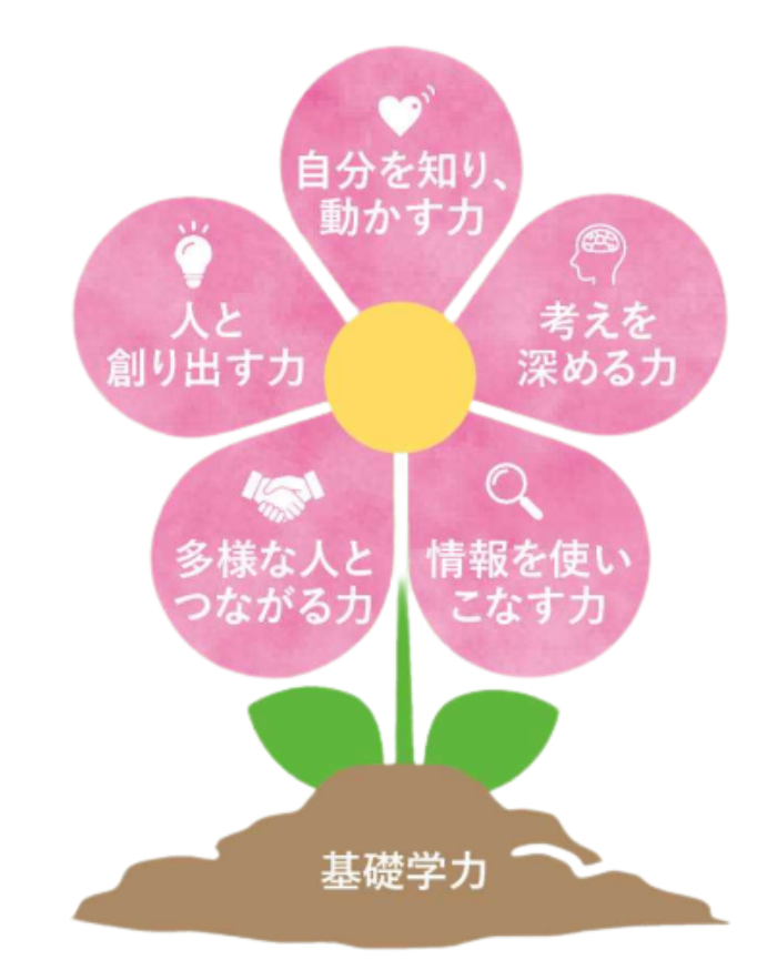 さらに、3年間の探究教育を通じて、5つの力を養成。