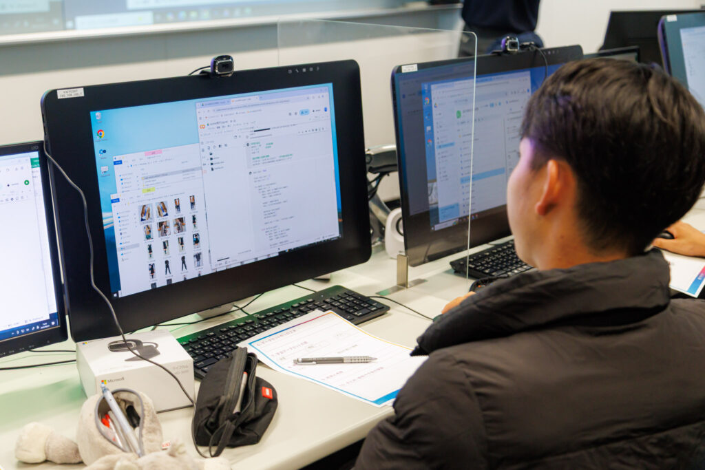 当日は、キャリア探究コース担任の安尾先生、副担任の津久田先生、そして情報科教員の私(椎葉)が引率しました。