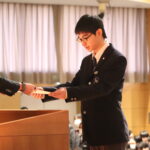 全校生徒の前で、その努力が称えられました。