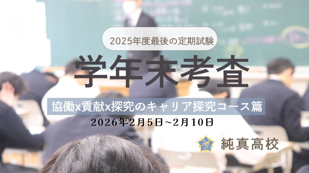 純真高校では、22月5日から2月10日まで、2025年度最後となる学年末考査が実施されています。校内が試験モードに包まれる中、探究特化型「キャリア探究コース」の教室を訪れると、少し意外で、そしてとても“純真らしい”学びの風景が広がっていました。