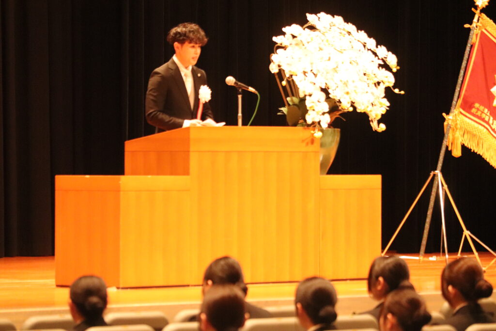 在校生代表は、コロナ禍という大きな困難を乗り越えて巣立つ先輩方へ、憧れと感謝の気持ちを述べました。