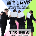 『誰でもMVP』は、勉強・部活動・行事・ボランティアなど何でもよいのですが、日々の学校生活の中で見られる“小さな頑張り”にスポットライトをあてる純真高校の新制度。大会で優秀な成績を収めた生徒だけではなく、校長の「どんな生徒の小さな変化にも気づき、それを評価したい」という想いから始まりました。