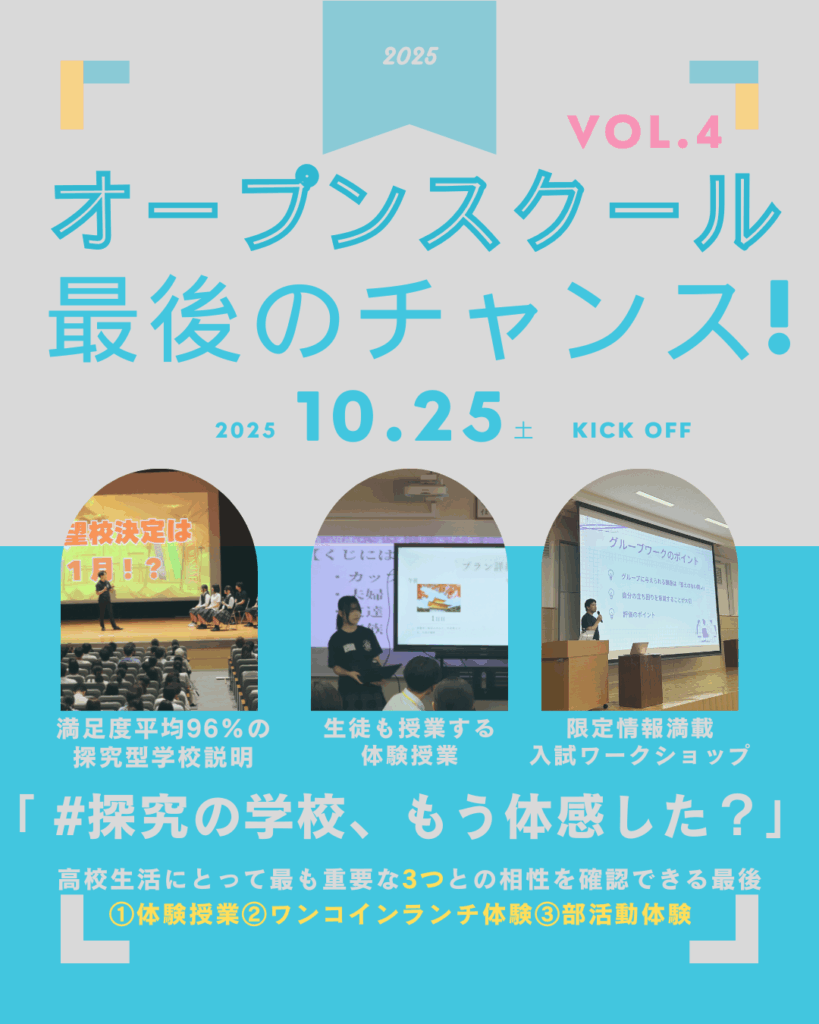 【申込受付中】第4回オープンスクール10月25日(土) -#探究の学校、もう体感した?