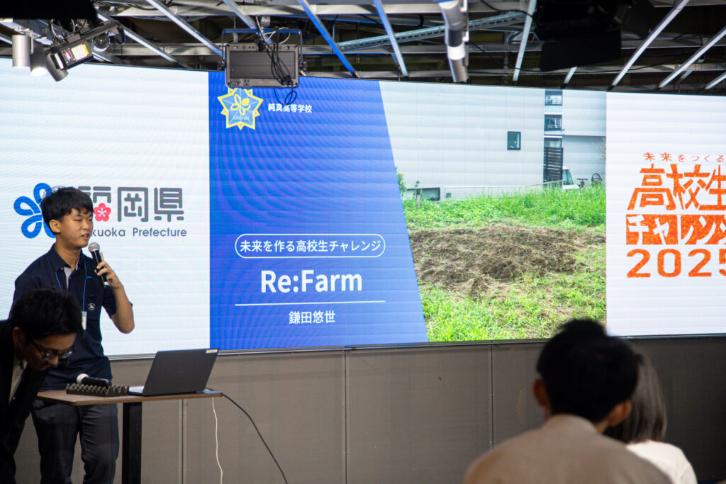 10月5日(日)、福岡県主催「未来をつくる高校生チャレンジ2025」の中間報告会が、esports Challenger’s Parkで開催されました。本校・純真高等学校からは、鎌田悠世(かまだ・はるせ)さんがチャレンジャーとして登壇。プロジェクト「Re:Farm(リ・ファーム)」のこれまでの歩みと、次の一歩を力強く語りました。会場には県内の中高生や教職員が集まり、7組の挑戦者の“今”を共有。刺激に満ちた3時間となりました。
