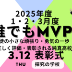 1月19日に、2025年度12月度の誰でもMVP表彰式が行われました。誰かにそっと見てもらえるのは誰しも嬉しく、モチベーションが上がるもの。純真高校ではそれを制度化しており、ちょっとした頑張り、ささいな勇気の一歩が評価されます。