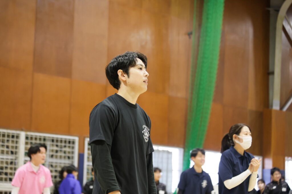 生徒に負けない連携と声掛けで生徒チームとガチンコで試合を繰り広げている様子は普段私たちに見せている顔とは違い、見とれてしまうほど。大きな声援のなか、堂々としたプレイを見せてくれました。
