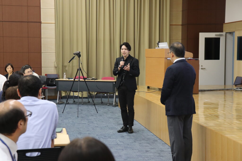 第1部で「共創科」という具体的な教育内容とその対外的な役割を認識した前提を踏まえることで、第2部の佐藤教授の講演が、本校教職員にとって、より「自分ごと」と捉えることのできる研修になると考えました。